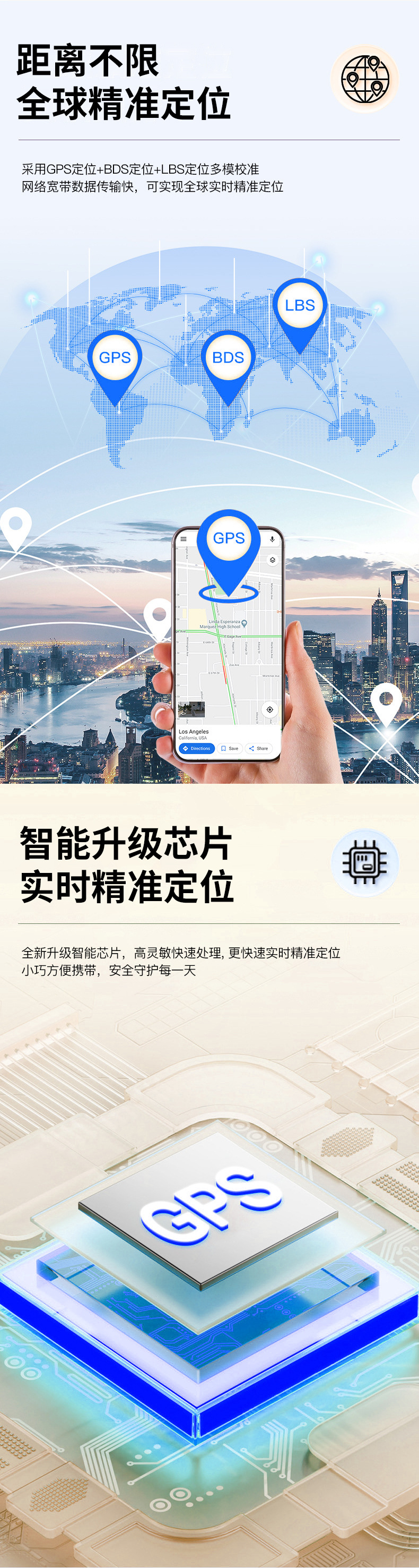 全新升级智能芯片,高灵敏快速处理,更快速实时精准定位小巧方便携带,安全守护每一天